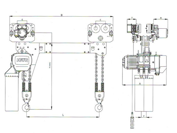 極限開關(guān): 吊上吊下都有極限開關(guān)裝置,使自動停止,防止鏈條超出,確保安全。